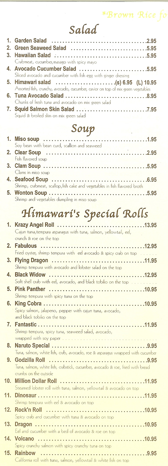 - Sushi/Sashimi